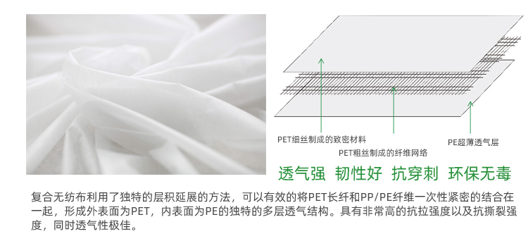 雙層包裝,無紡布包材十分堅(jiān)韌,帶掛鉤,懸垂性好,可置于集裝箱壁的凹槽,節(jié)省裝箱空間。