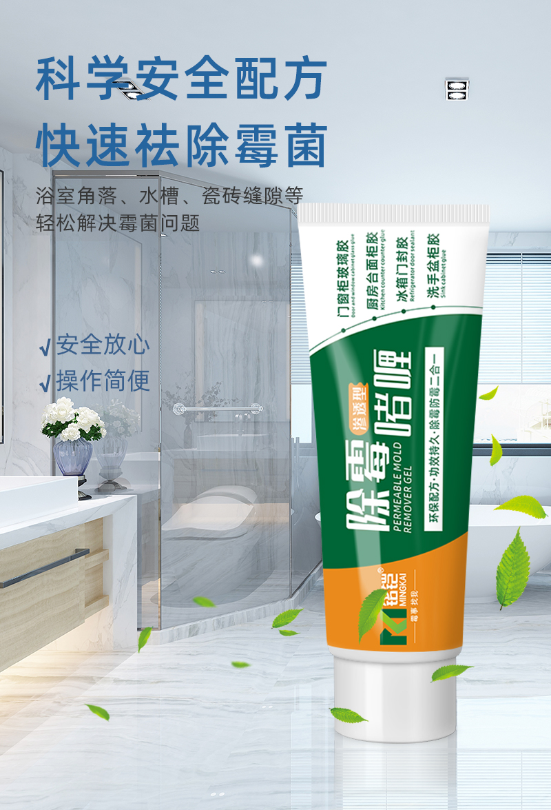 除霉啫喱源頭廠家,銘鎧專(zhuān)注健康日化用品原料以及成品的研發(fā)和供應(yīng),用于洗手間瓷磚、冰箱膠圈、玻璃膠等,2-10小時(shí)溶解霉菌,一抹即凈,省心省力,方便安全有效。