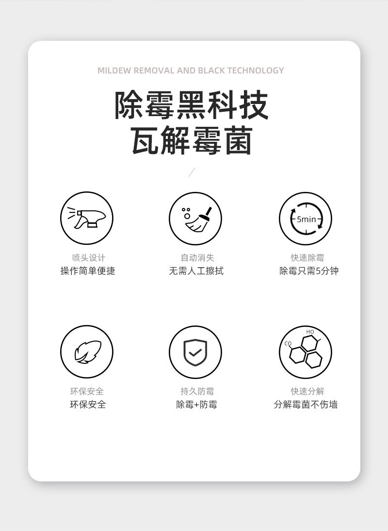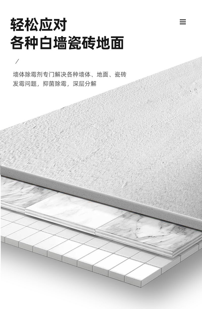 ⎛⎝⎠⎞墻體除霉劑,采用多種材料復(fù)合而成??焖俜纸饩z、菌體及霉菌分泌的色素,和殺滅霉菌及霉菌孢子。本產(chǎn)品操作簡(jiǎn)便,只需輕輕噴灑,幾分鐘即可消除霉菌。